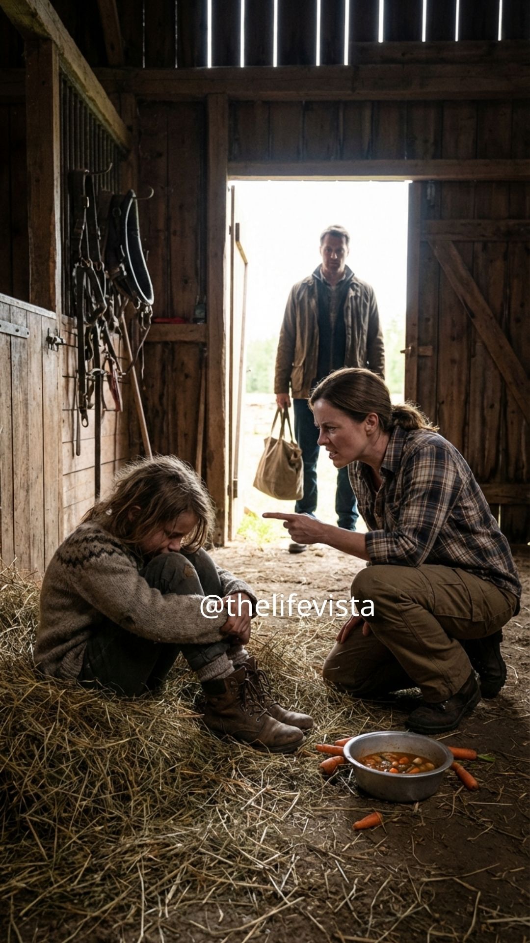 The little girl lowered her eyes slowly, as if even lifting them too quickly might make the moment worse. Her small hands trembled around a cold plate of overcooked vegetables and watery oatmeal that smelled sour and metallic, the kind of smell that lingers in a room long after the food has gone untouched. The air inside the storage room was thick and damp, heavy with mildew and stale silence that clung to the concrete walls like something alive. She couldn’t scream. She couldn’t defend herself with words. She could only obey… and wait.
