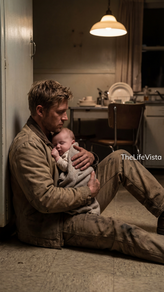I sat on the kitchen floor because I didn’t know where else to go. I leaned against the wall, still in my jacket, and held him close to my chest. He cried in waves, loud at first, then weaker, then those uneven breaths that come when they’re wearing out. I didn’t move. I just stayed there and held him.