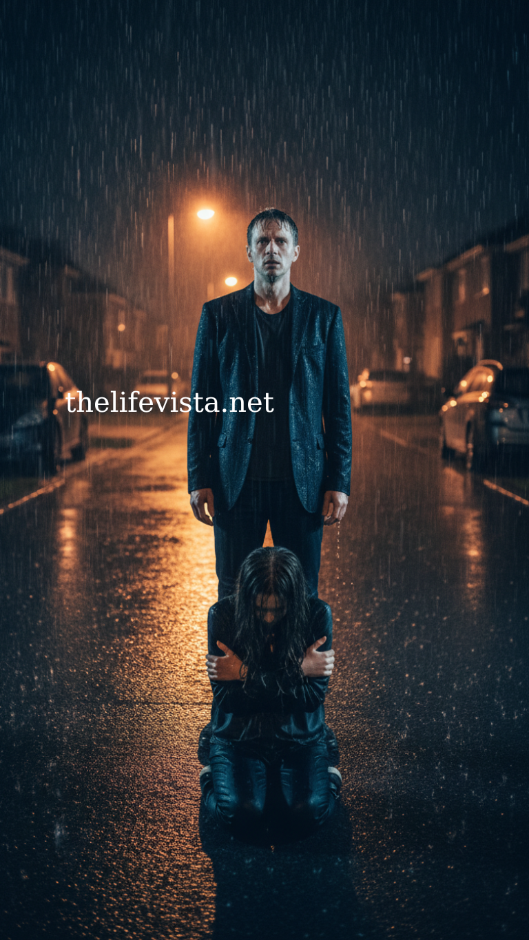 The rain was coming down in cold, relentless sheets when I turned onto the street leading to my daughter’s house. I hadn’t planned to stop by; I was only dropping off a package she’d accidentally had shipped to my place. But then I saw her—Ava—kneeling on the driveway, drenched, trembling, her hands pressed to the pavement like she was being made to pray. Water ran down her face, mixing with mascara streaks, and for a second I thought she’d fallen. But the moment she lifted her head and flinched, I understood.