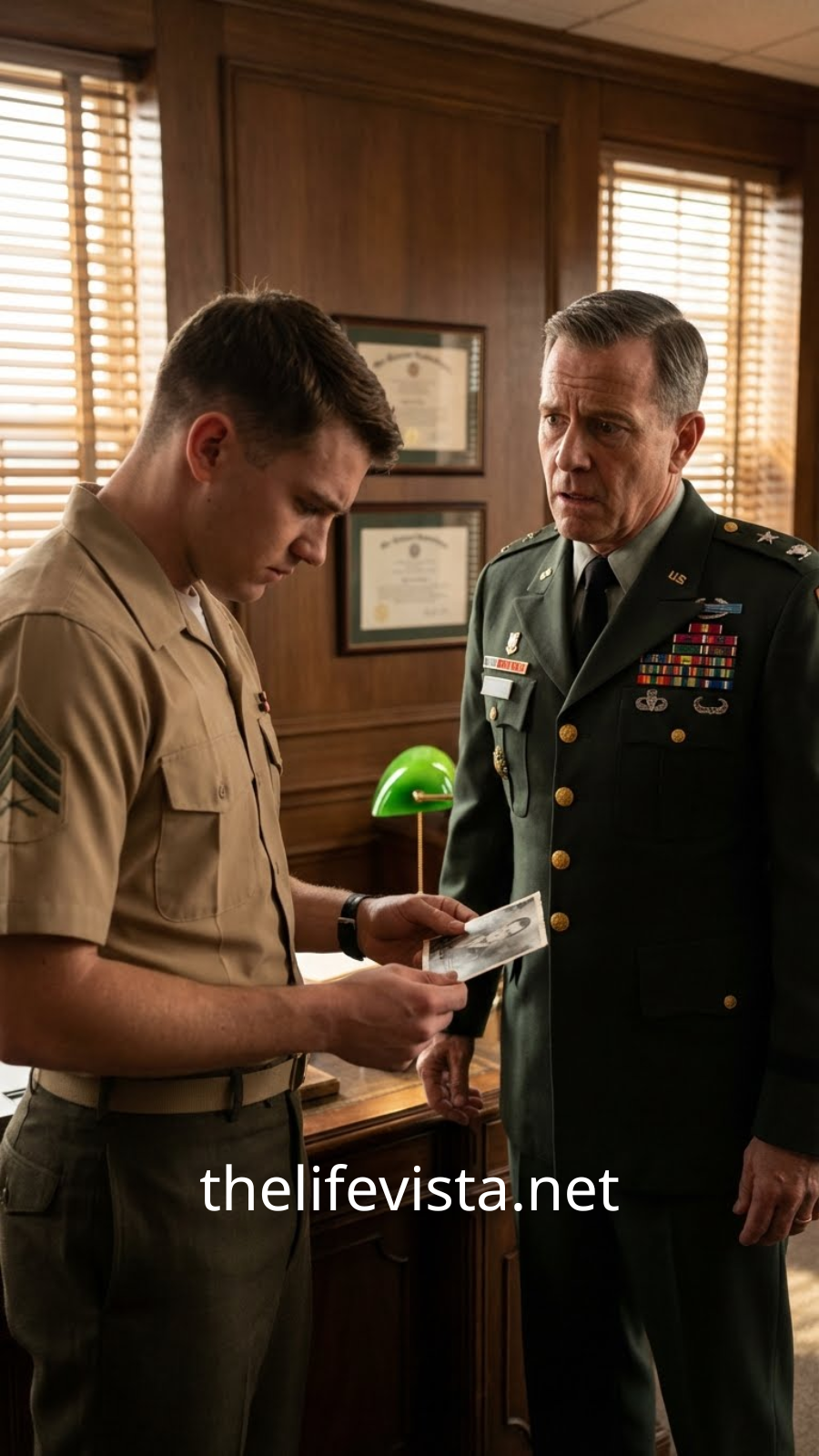 I snapped upright, forcing control back into my posture. “No, sir. I—” My eyes betrayed me, drifting back to the photograph.