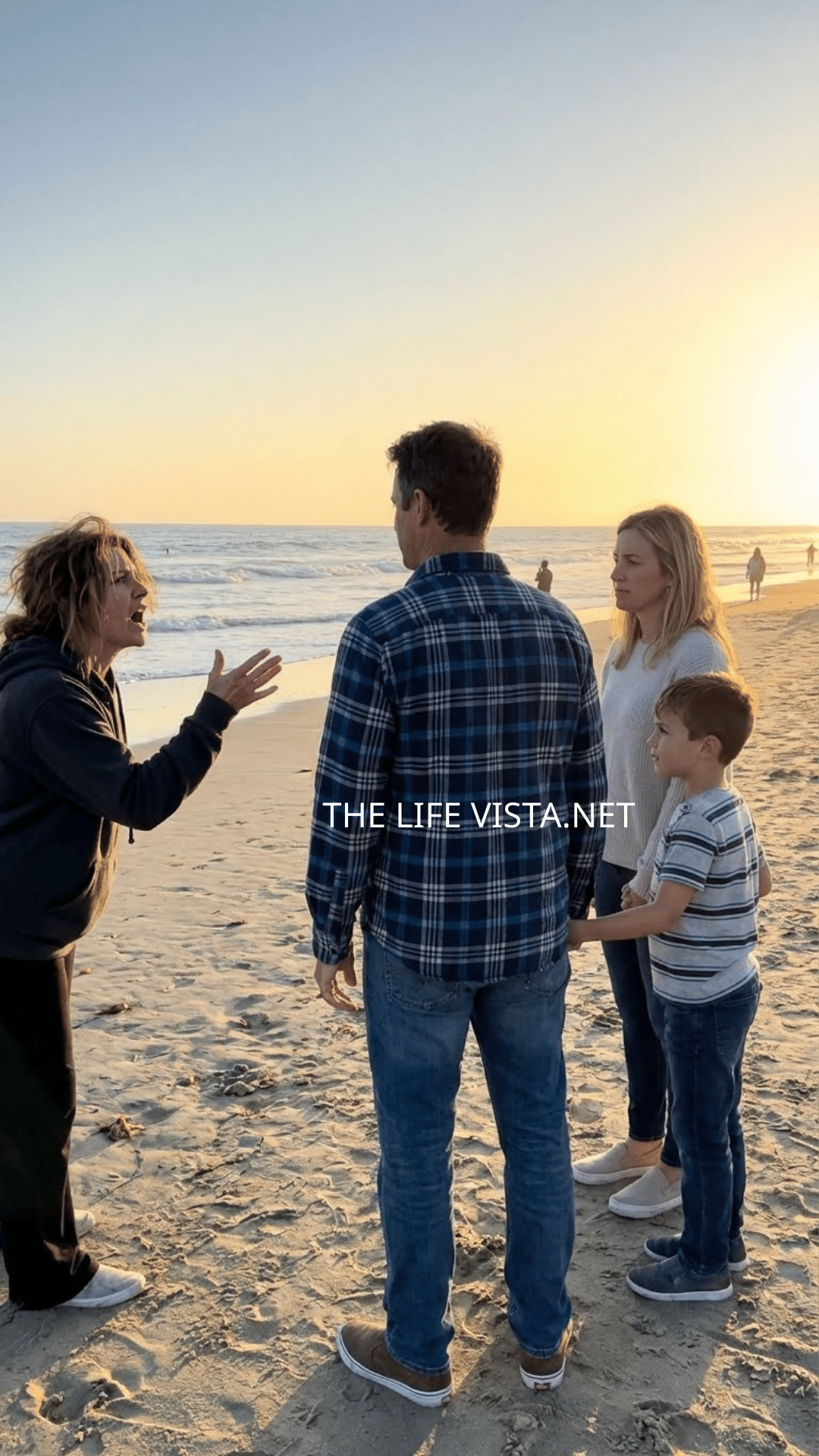 I opened the door, my heart pounding. There she stood — the woman from the beach. Up close, I saw how tired she looked beneath her careful smile, how nervous her hands were.