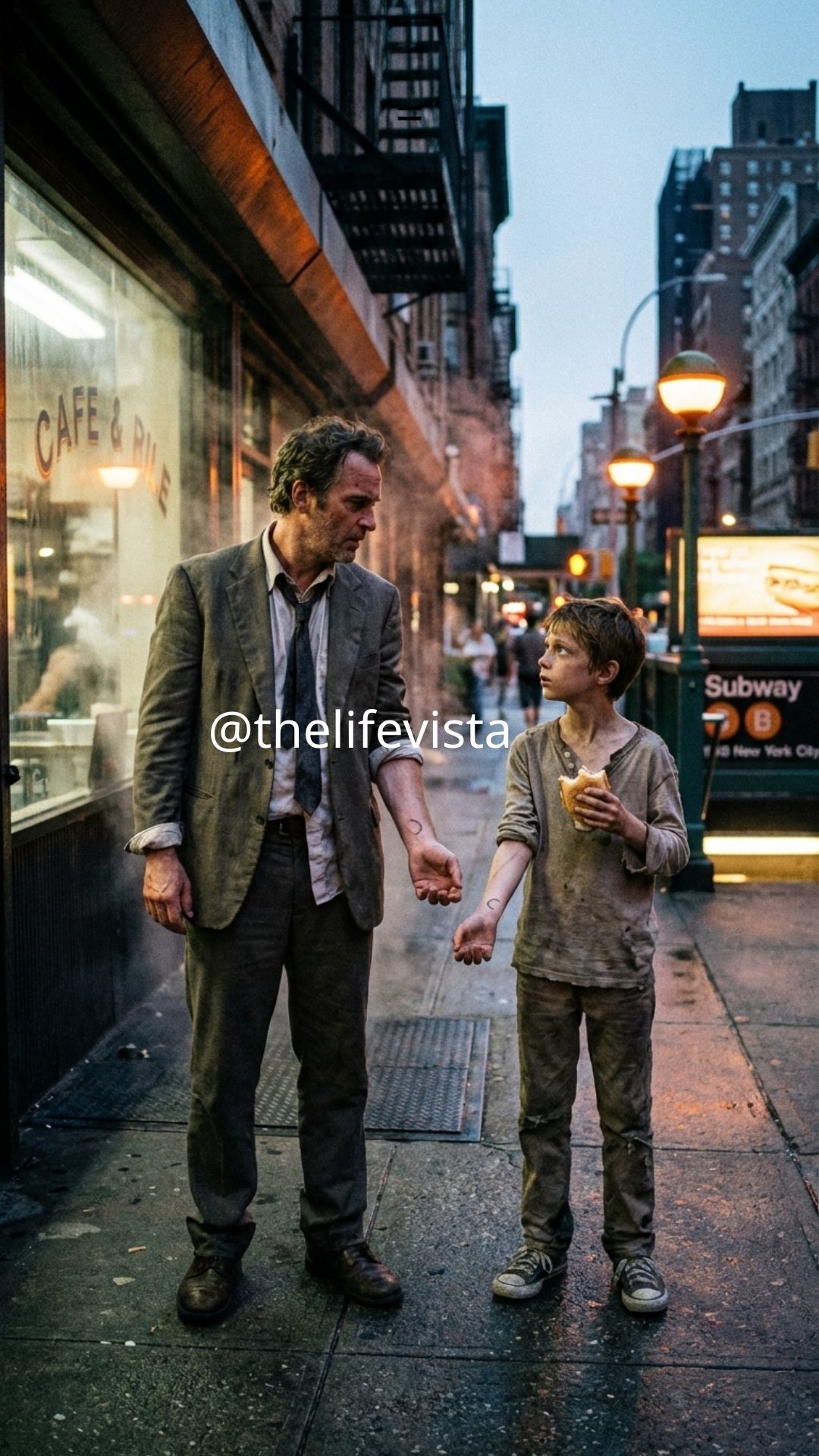 While Owen complained about math homework and left fries untouched on his plate because he knew there would always be more food in the kitchen, this boy had spent the day riding trains and asking strangers for leftovers near an address written on an old business card. The contrast was so sharp it felt like indictment, as if two separate versions of fatherhood had suddenly been set side by side in front of me—one I had been living without effort because life had placed it neatly in my hands, and another I had failed without even knowing there had been anything there to fail.