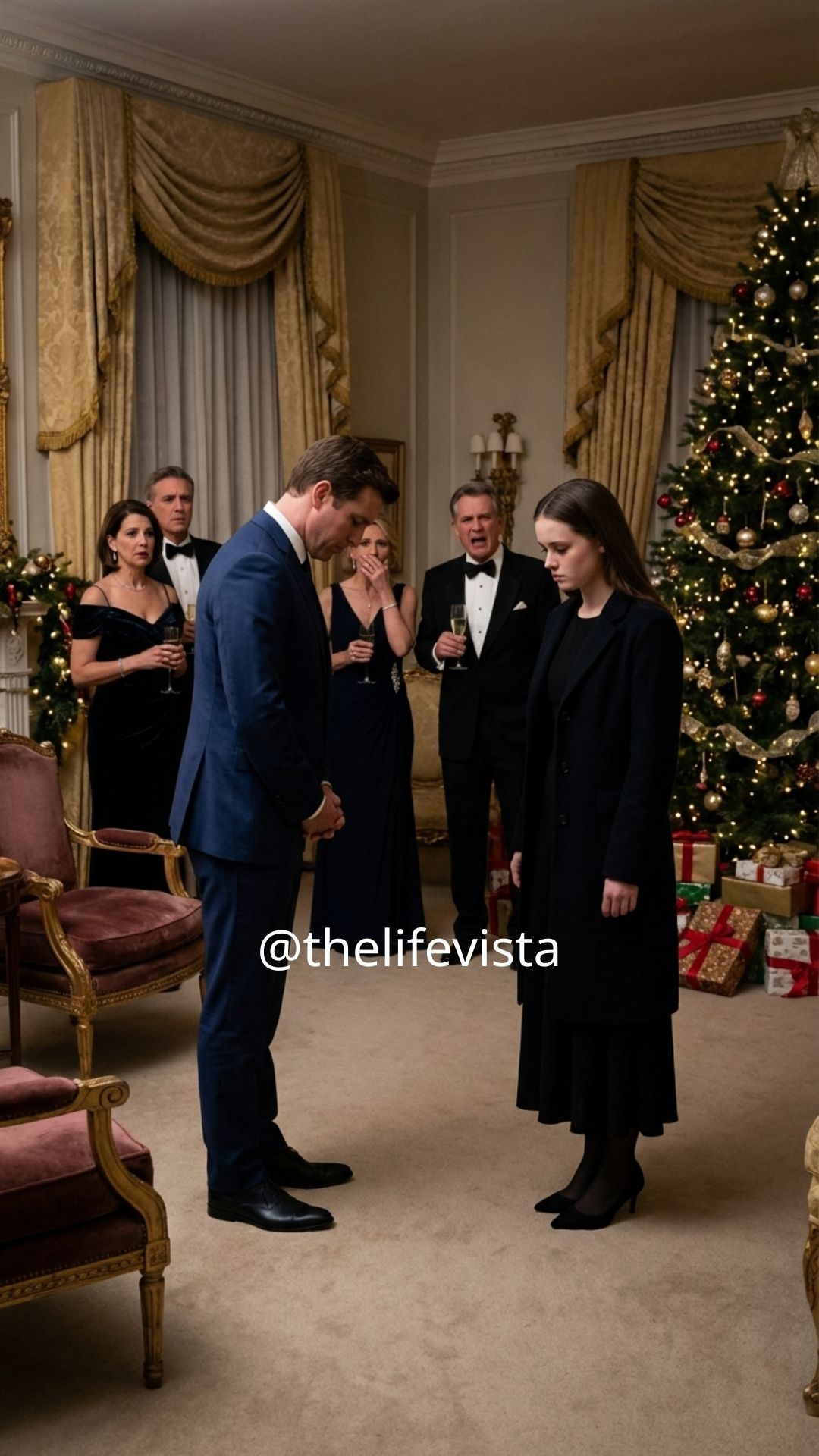 Then, as I stepped further into the room, I noticed the air shift. Conversations slowed, and faces turned toward the center of the living room, as if an unseen signal had been given. That’s when I saw him, a tall man in a charcoal suit standing beside the Christmas tree, calm and unmistakably important, the kind of presence that didn’t demand attention because it simply owned it. My family stared at him like he was royalty, and I knew him instantly, just like the world did.