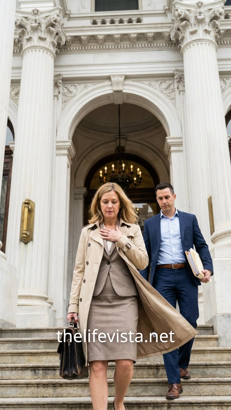 She carried the kind of professional calm that practically shouted lawyer from thirty feet away.