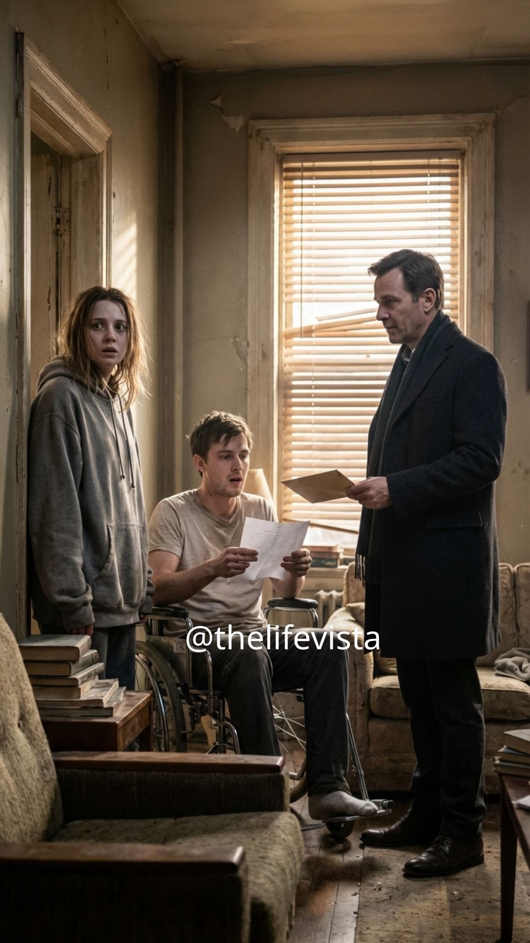 Richard set the envelope on the coffee table like it might explode and sat on our sagging thrift-store chair like he’d sat on worse. Ethan and I took the couch, my knee pressed against his wheel, his hand finding mine and staying there as if anchoring us both. “I’m an attorney,” Richard said. “I represented Mr. Whitaker. Before he died, he gave me very clear instructions about you.” Ethan looked baffled. “But I don’t know him.” “He thought you wouldn’t,” Richard said. “That’s why he wrote this.” He slid the envelope closer.