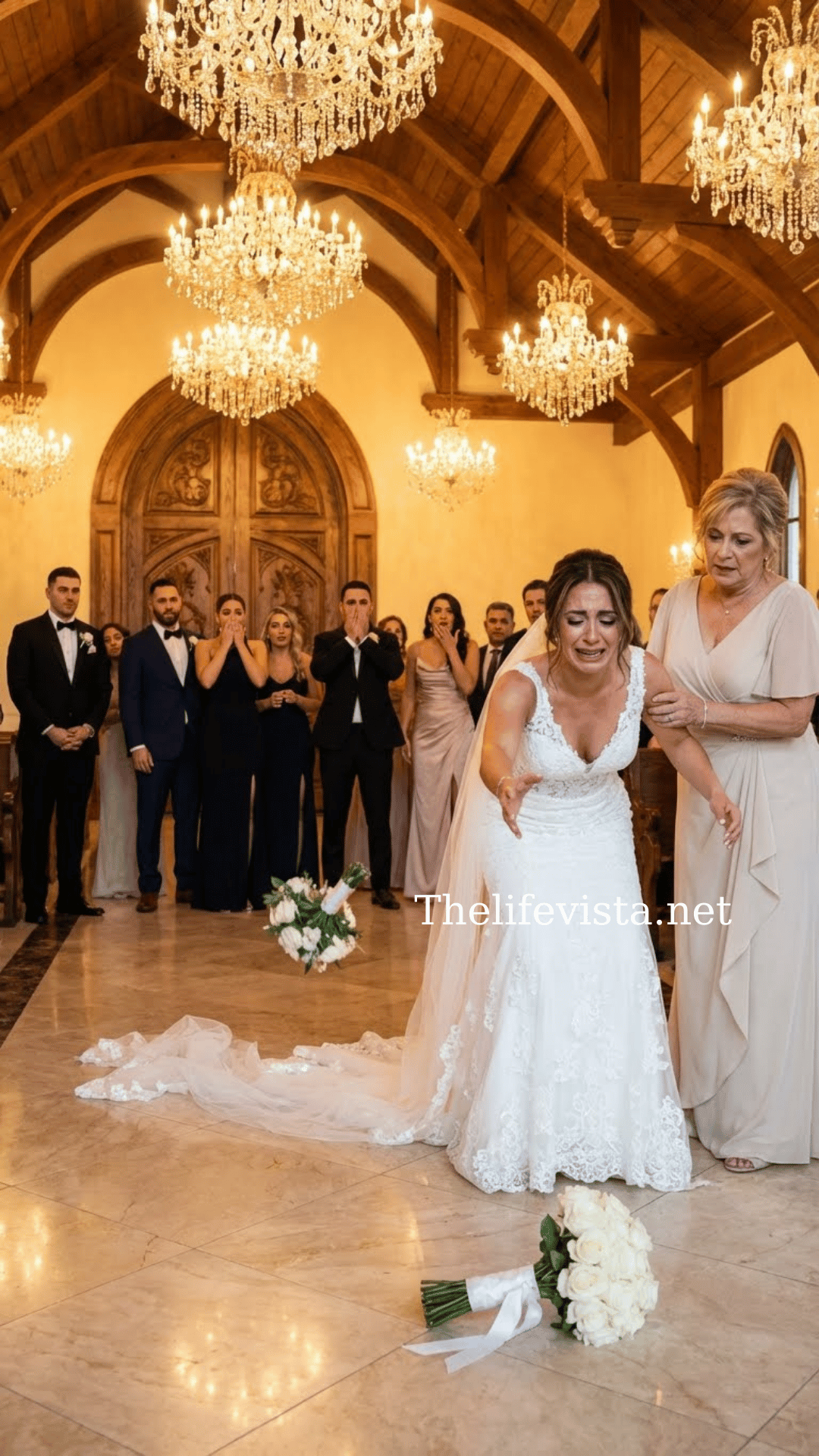 Before the officiant could begin, I stepped forward, lifted my bouquet high—and threw it to the floor. Gasps rippled through the entire crowd. Then, with deliberate calm, I reached up, removed my veil, and let it fall beside the crushed bouquet.