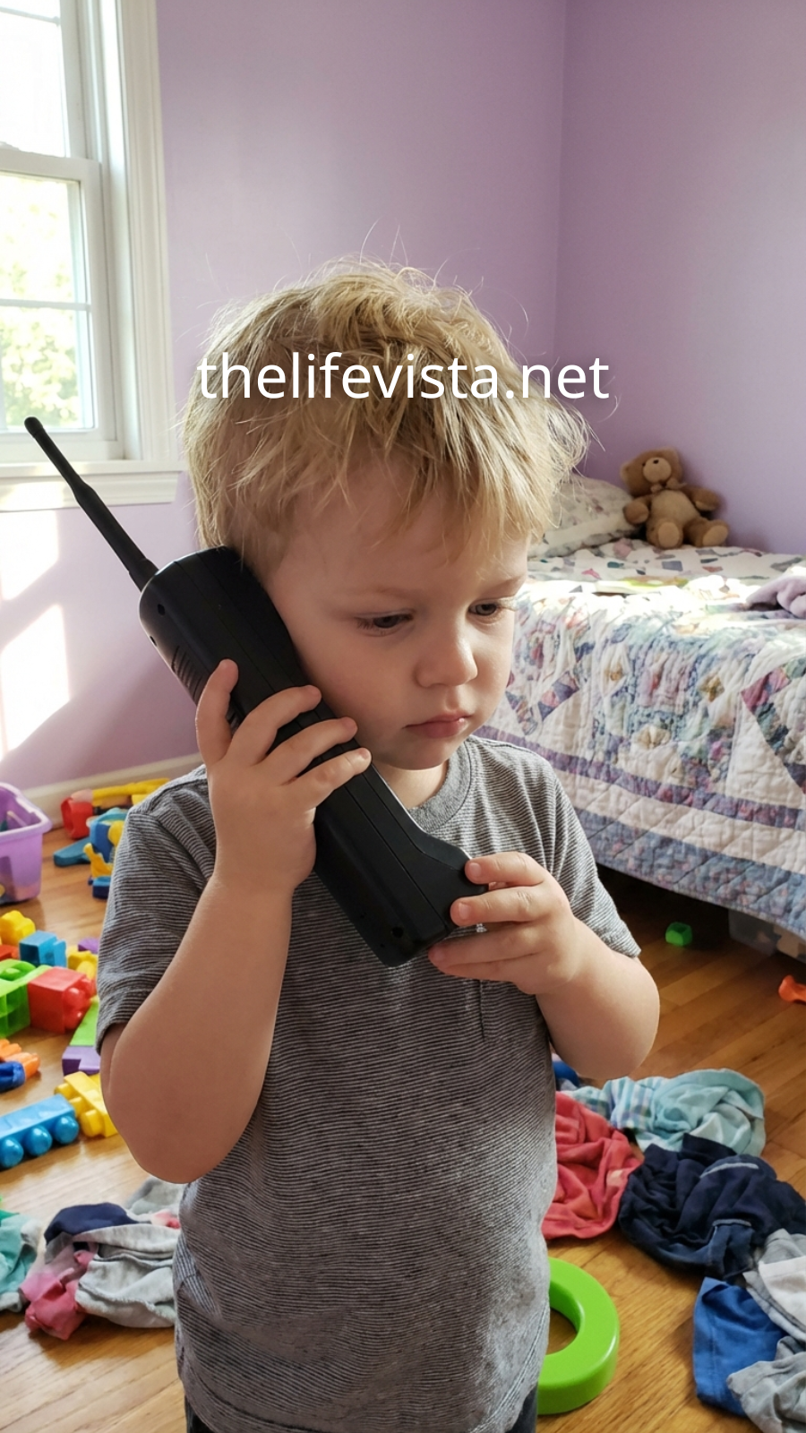 “It’s a walkie-talkie!” he declared seriously. “So we can talk even when I’m in my room! You press this button and say my name!”