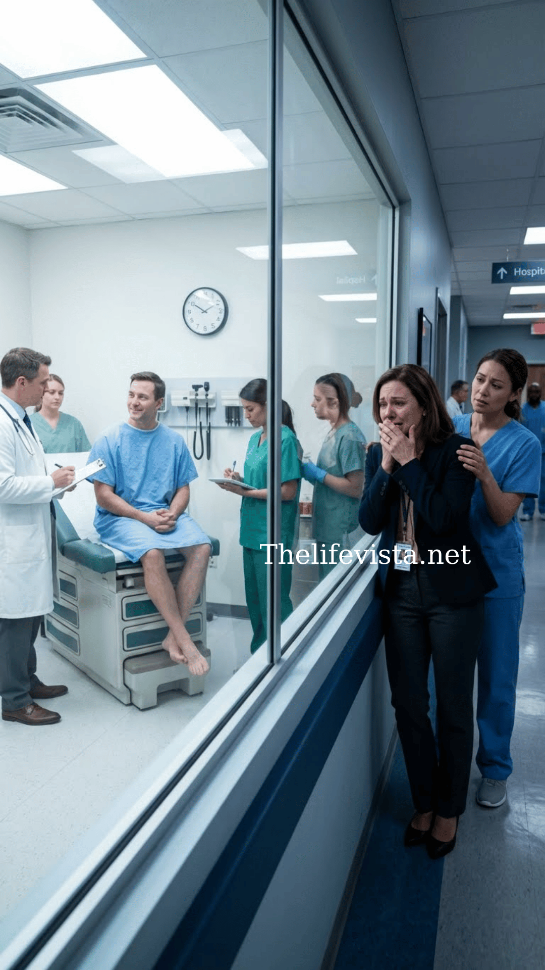 My knees nearly buckled as I stared through the small window. Cole swung his legs over the side of the operating table, moving with the ease of someone who had walked in perfectly healthy. The fake doctor handed him a clipboard while the two men in lab coats stood guard near the door. I felt myself shaking—not out of fear, but out of betrayal so sharp it bruised.