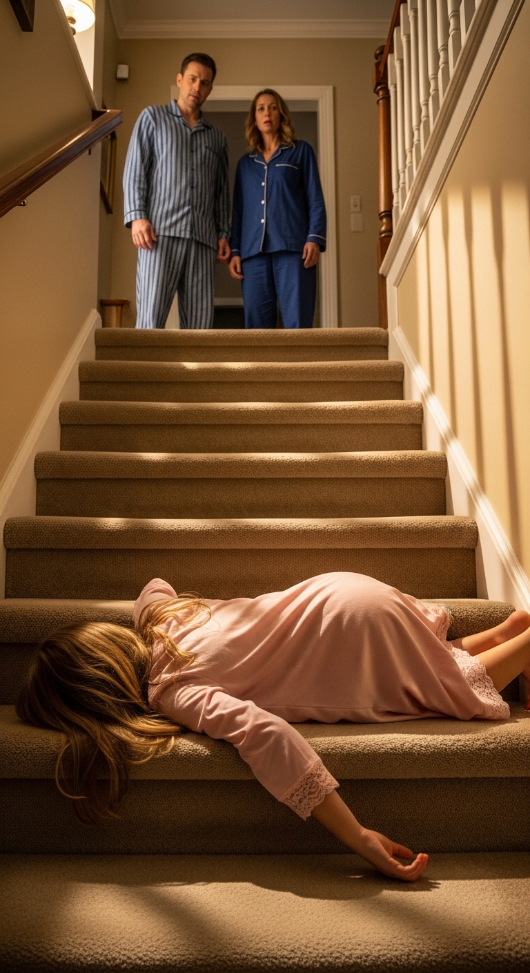 For a moment, I couldn’t breathe. My husband—David—had been my partner for twelve years. Jenna was my sister. The betrayal hit like a bullet, but what made my blood boil was the image of Sophie at the bottom of those stairs, crying, alone, hurt by the man who was supposed to protect her.