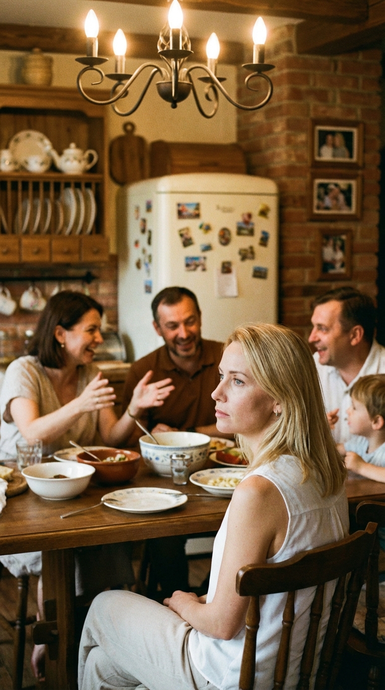 Inside, the house smelled like lasagna—my favorite. Mom only made it for birthdays or bad news. Megan was already there, perched at the dining table in a floral dress, twisting her fingers together. She looked nervous and…excited?