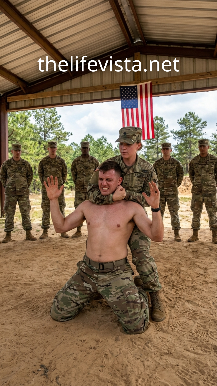 She shifted her weight slightly—economical, efficient. Her left hand caught Logan’s wrist and redirected it at an angle that turned his own momentum against him. Gravel shifted beneath his boots. In one fluid roll of her shoulder, she stepped under his arm.