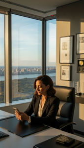 I’m sitting in my corner office on the 53rd floor, overlooking Central Park and the Hudson.