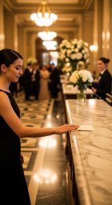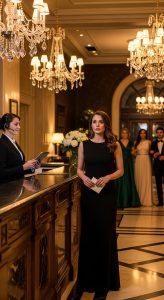 I stared at the marble floor. The receptionist was pretending not to listen. Guests brushed past, glittering, laughing, belonging.