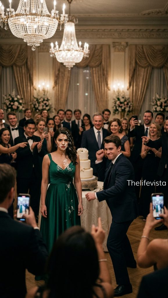 And then without warning, without hesitation, without a single word of explanation, he smashed the cake directly into my face with enough force to snap my head back slightly. The room erupted. Laughter everywhere from everyone, loud and harsh and cruel, echoing off the high ceilings and crystal chandeliers. The cake was thick and heavy, coating my face completely, my hair, my eyes, my mouth.