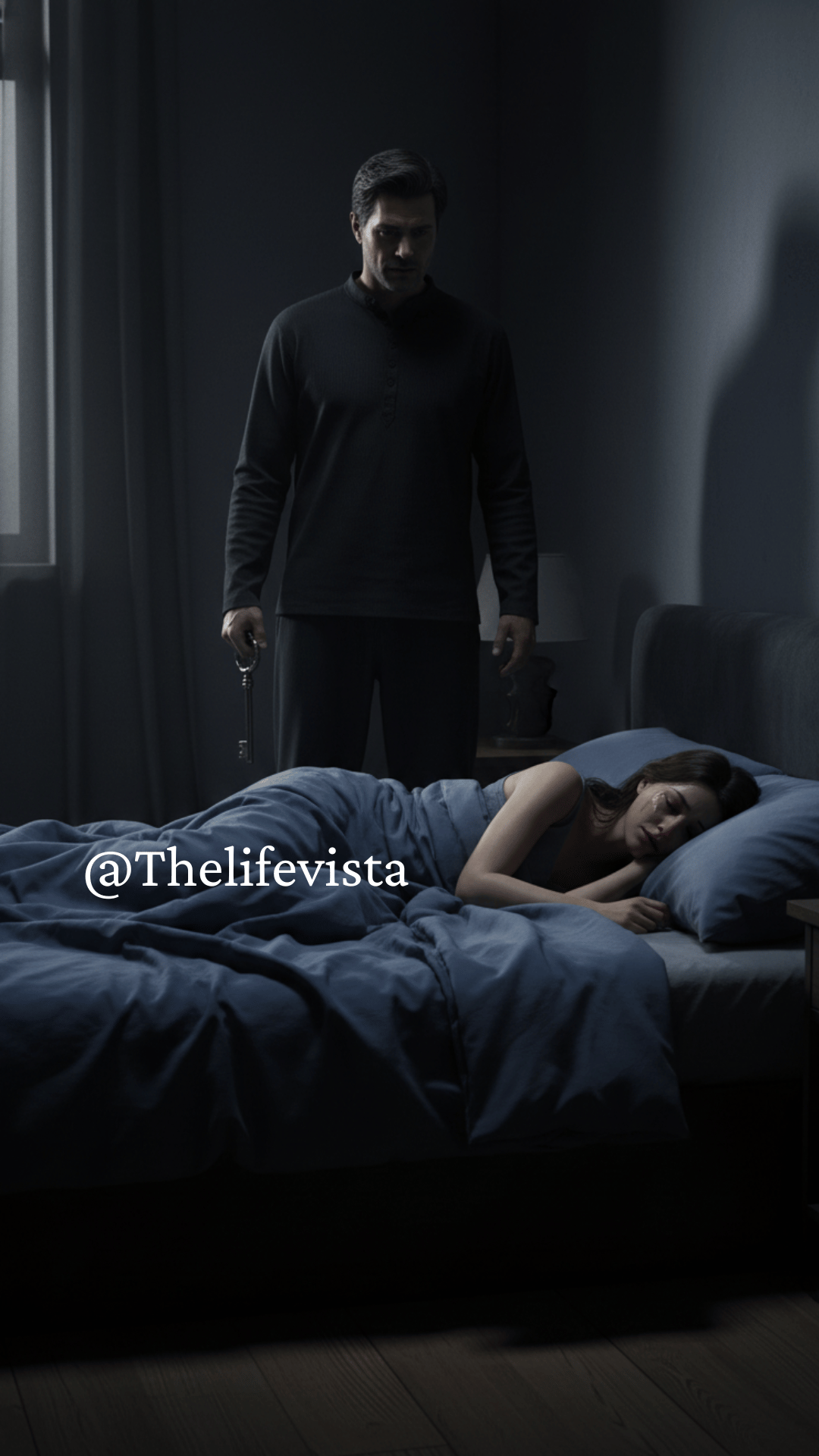 She climbed into bed, lying on her side with her eyes almost closed, steadying her breath to mimic sleep. The room was silent except for the soft hum of the heater. Minutes crawled by. Then—the doorknob clicked.