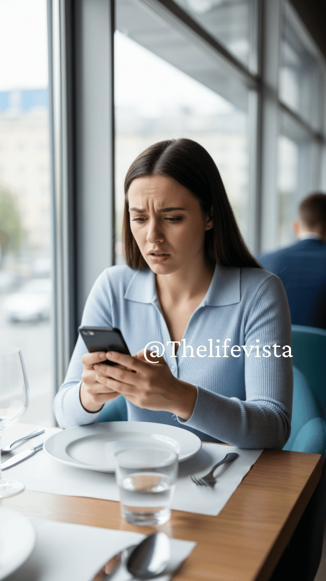 A waiter approached my table asking something about sparkling or still. I must have nodded because he placed a glass of water in front of me, though I don’t remember lifting my eyes to meet his. My hands trembled just enough that I had to steady them on the table.