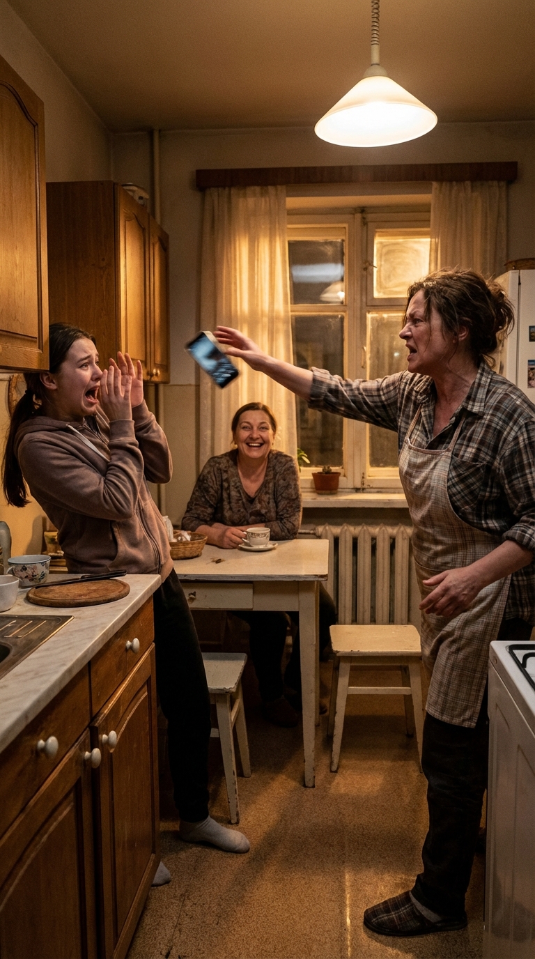 Before I could react, she lunged forward. Her hand snatched the phone out of my grip with shocking speed, her nails digging into my wrist. I froze as she turned it over in her palm, inspecting it like a pawnshop owner, then looked straight into my eyes. That quiet, cold fury I’d seen so many times as a child flickered back to life.
