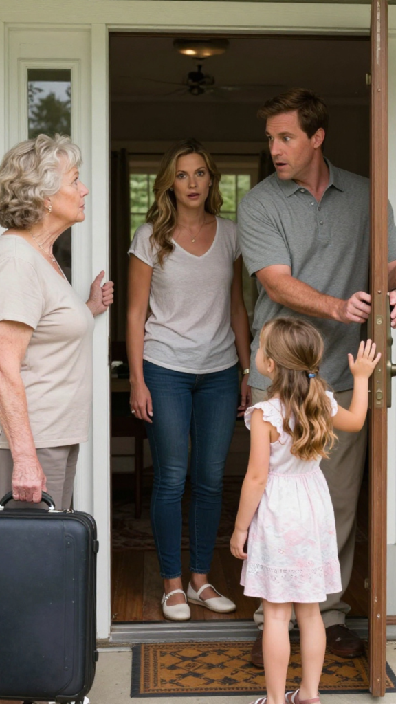 I stood there on that picture-perfect porch under a sky that had finally decided to drizzle, birds chirping in the trees like it was any other day. My suitcase sat by my feet. My son was on the other side of the door. My granddaughter’s voice echoed in my mind—Grandma.