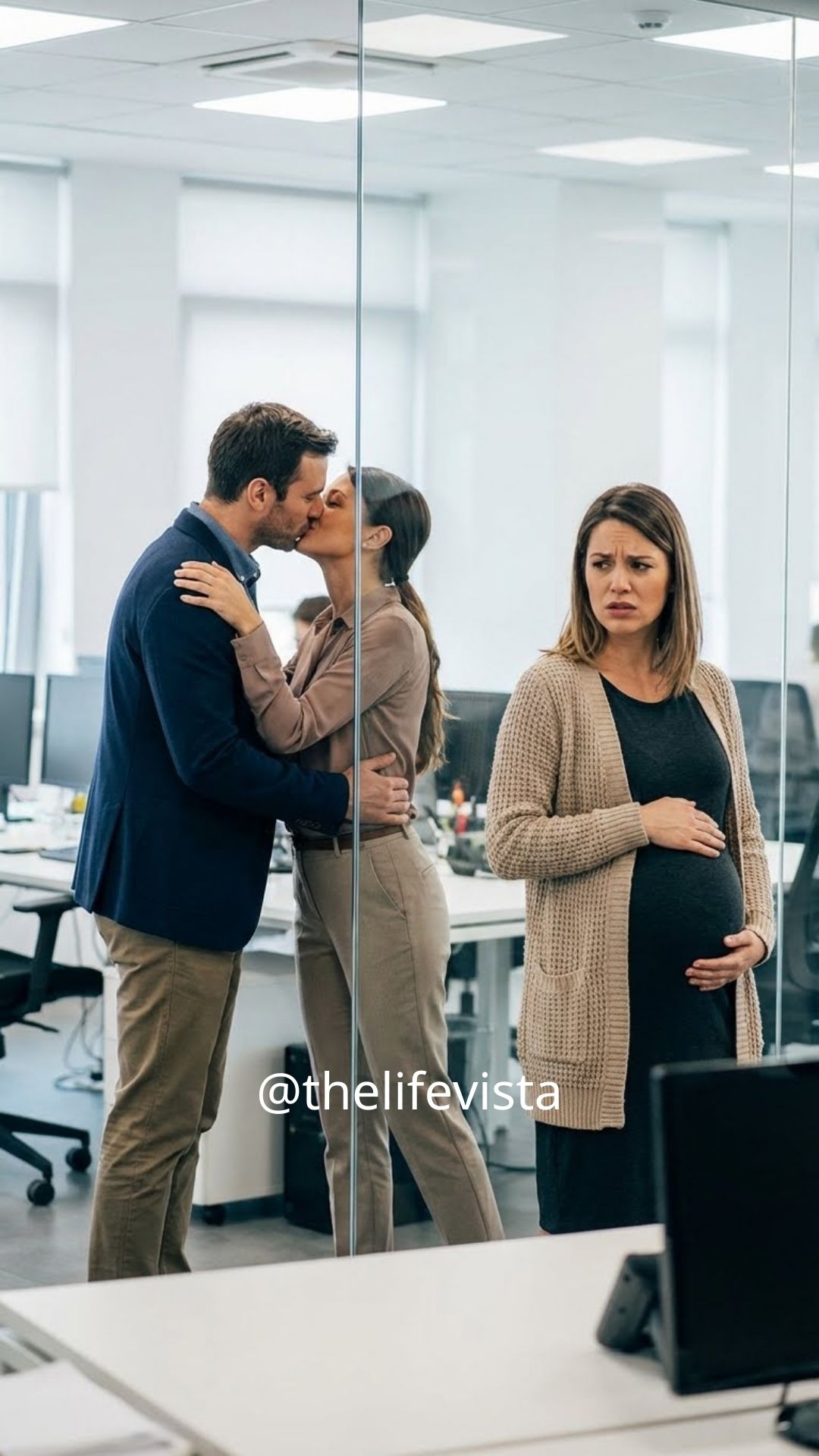 Ethan was pressed against his desk, kissing a woman I had never seen before. Her hands were tangled in his hair, her body angled toward him with practiced ease, and his arms were wrapped around her waist without hesitation. It wasn’t a mistake or a misunderstanding. It was intimate and intentional, like they had been waiting for that moment all morning.