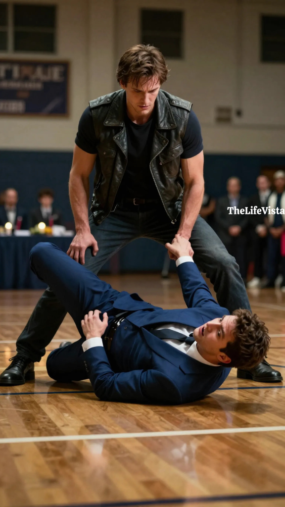 I Was Applauding My Daughter’s Graduation When a Leather-Clad Biker Threw a Man in a Blue Suit to the Gym Floor, and for One Terrifying Moment, It Looked Like Violence Had Invaded the Most Important Day of Our Lives