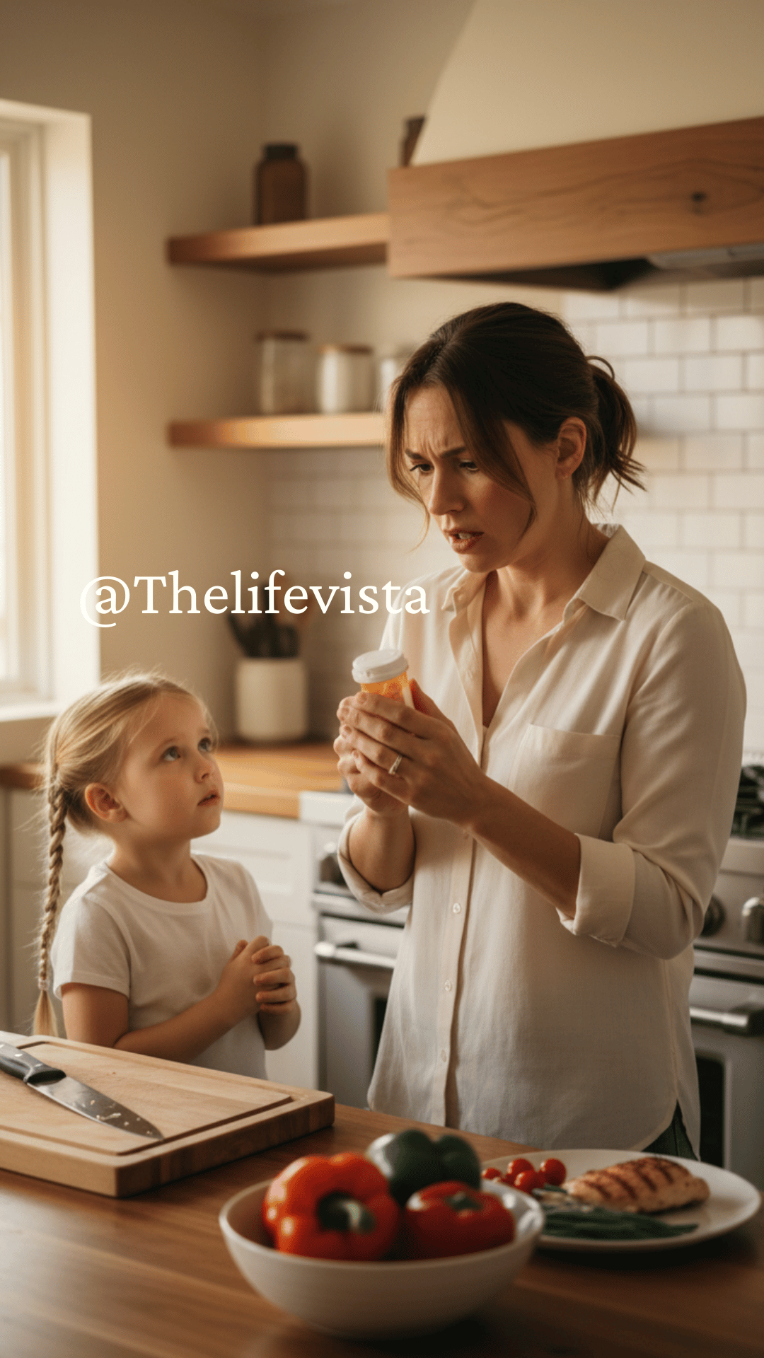 I was making dinner when my little daughter tugged my robe and whispered, “Mom, can I stop taking the pills Aunt gave me?” My blood turned to ice. I kept my voice calm and asked for the bottle. When the doctor examined it, his face drained of color. “Do you know what this is?” he asked. “Where did you get it?”