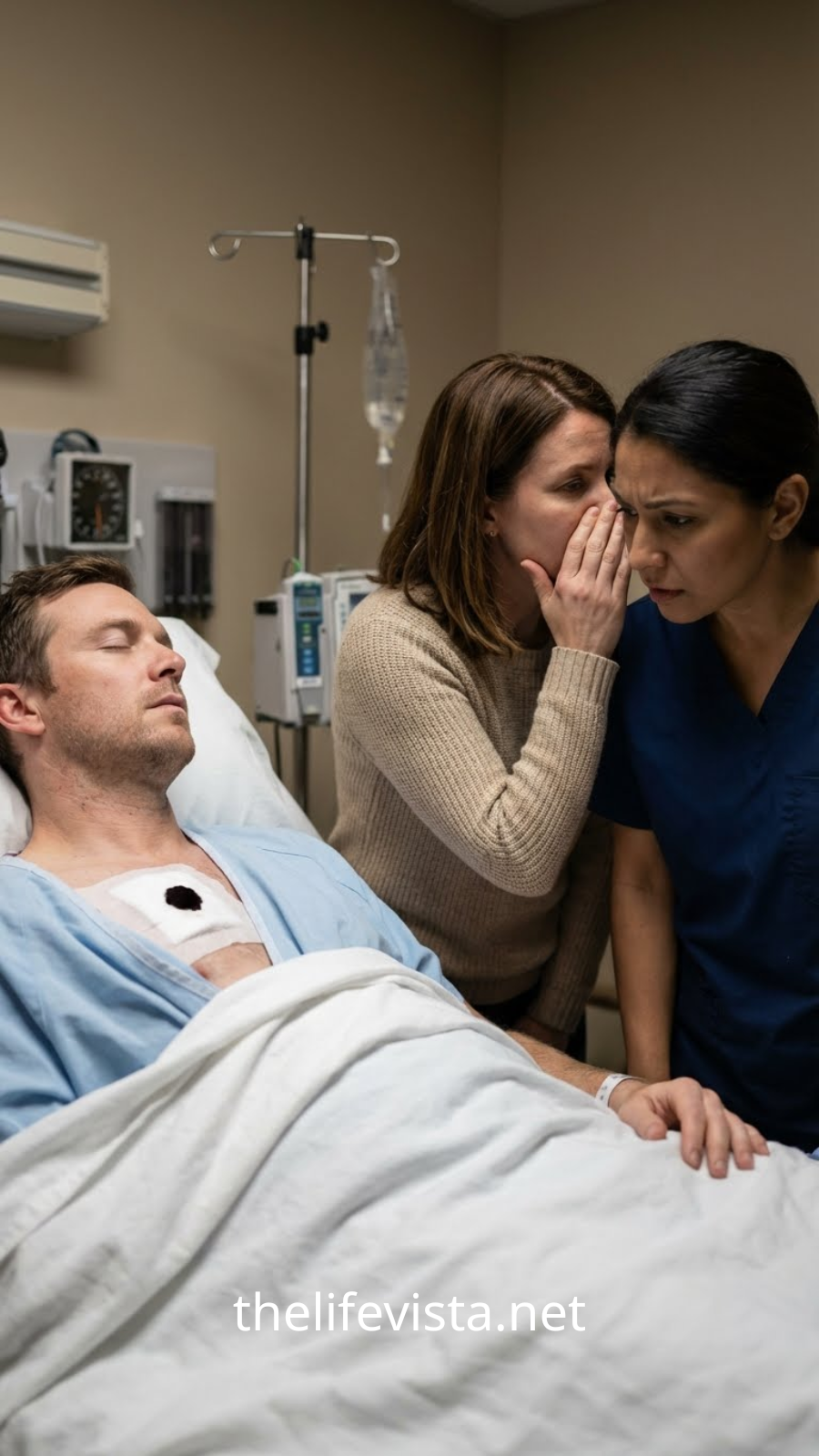 I woke up sometime past midnight to hushed voices near the door. I thought I was dreaming at first—the morphine made everything hazy. But the words were sharp enough to cut through the fog.