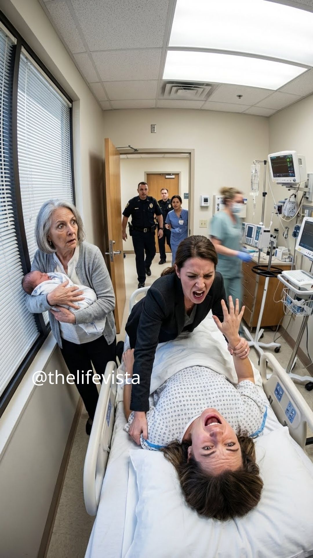 Security officers rushed in, followed by two nurses and a hospital supervisor. One officer immediately took my daughter from my mother’s arms, cradling her safely against his chest.
