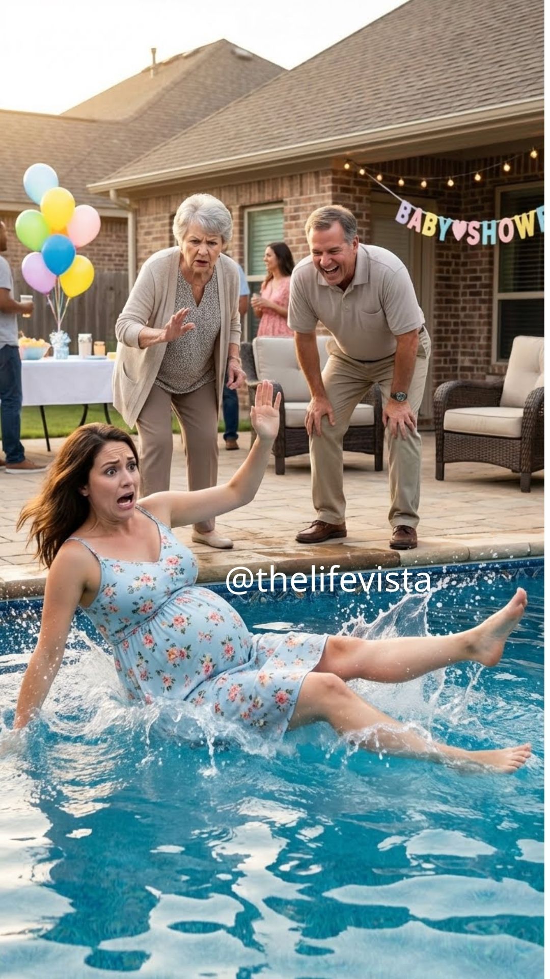 I’ll never forget my baby shower at eight months pregnant. In front of everyone, my husband handed his mother the full $10,000 I’d saved for childbirth. When I tried to stop him, he screamed at me to stay out of his way. Then his cruel mother struck my pregnant belly, knocking me into the pool. As I slipped under the water, holding my stomach in terror, my husband only laughed. When I finally looked down, what I saw left me completely frozen.