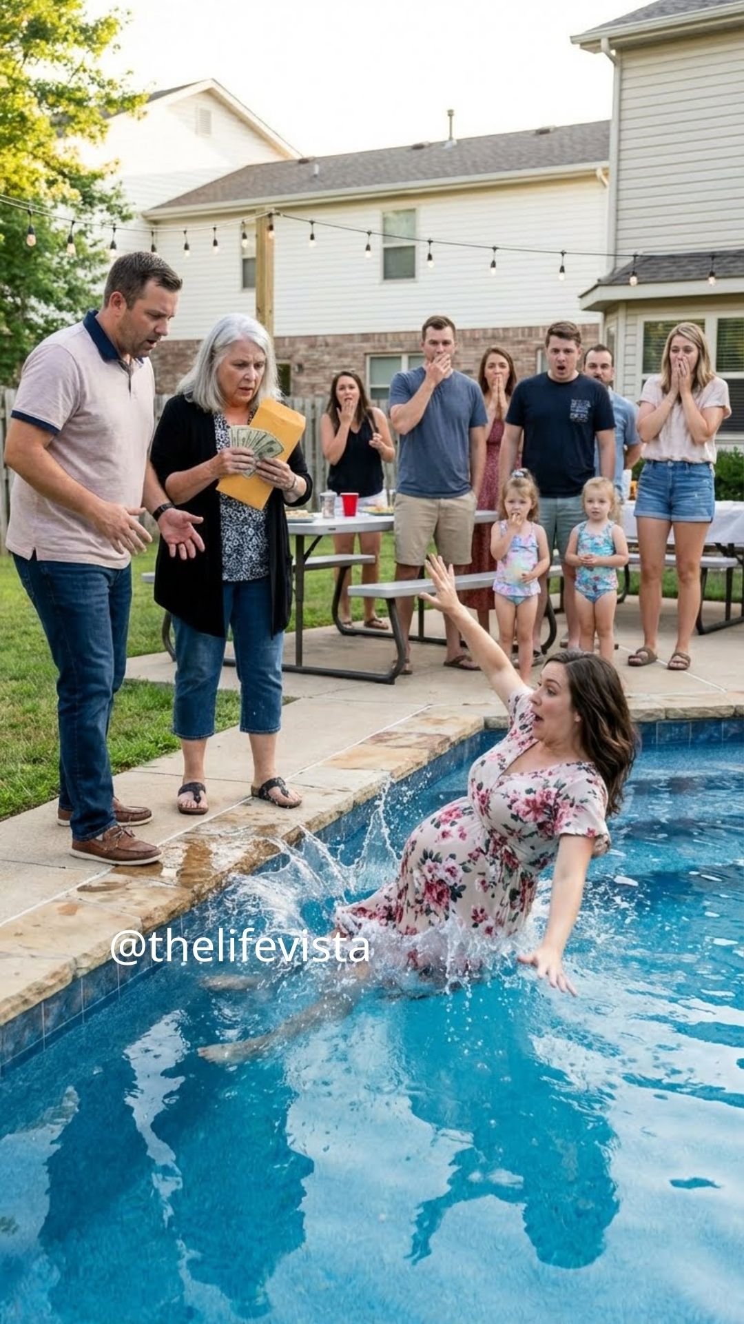 I took a step back, my heel slipping on wet tile near the pool’s edge. I reached out, but no one moved.