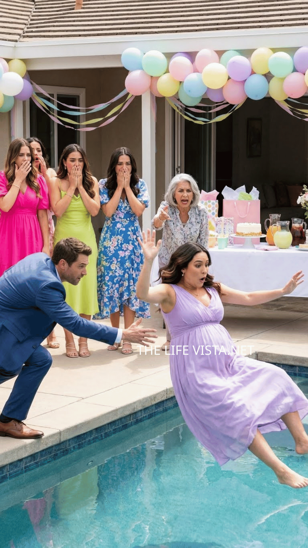 I’ll never forget that day at my baby shower, when I was eight months pregnant. My husband shocked everyone by giving the $10,000 we’d saved for the delivery to his mother. When I tried to stop him, he yelled furiously, “How dare you stop me?!” Before I could react, my cruel mother-in-law punched me in the stomach so hard I lost my balance and fell into the pool. As I sank, struggling to breathe and protecting my baby, my husband just stood there… laughing. And then, when I looked down at my belly, I froze in shock.