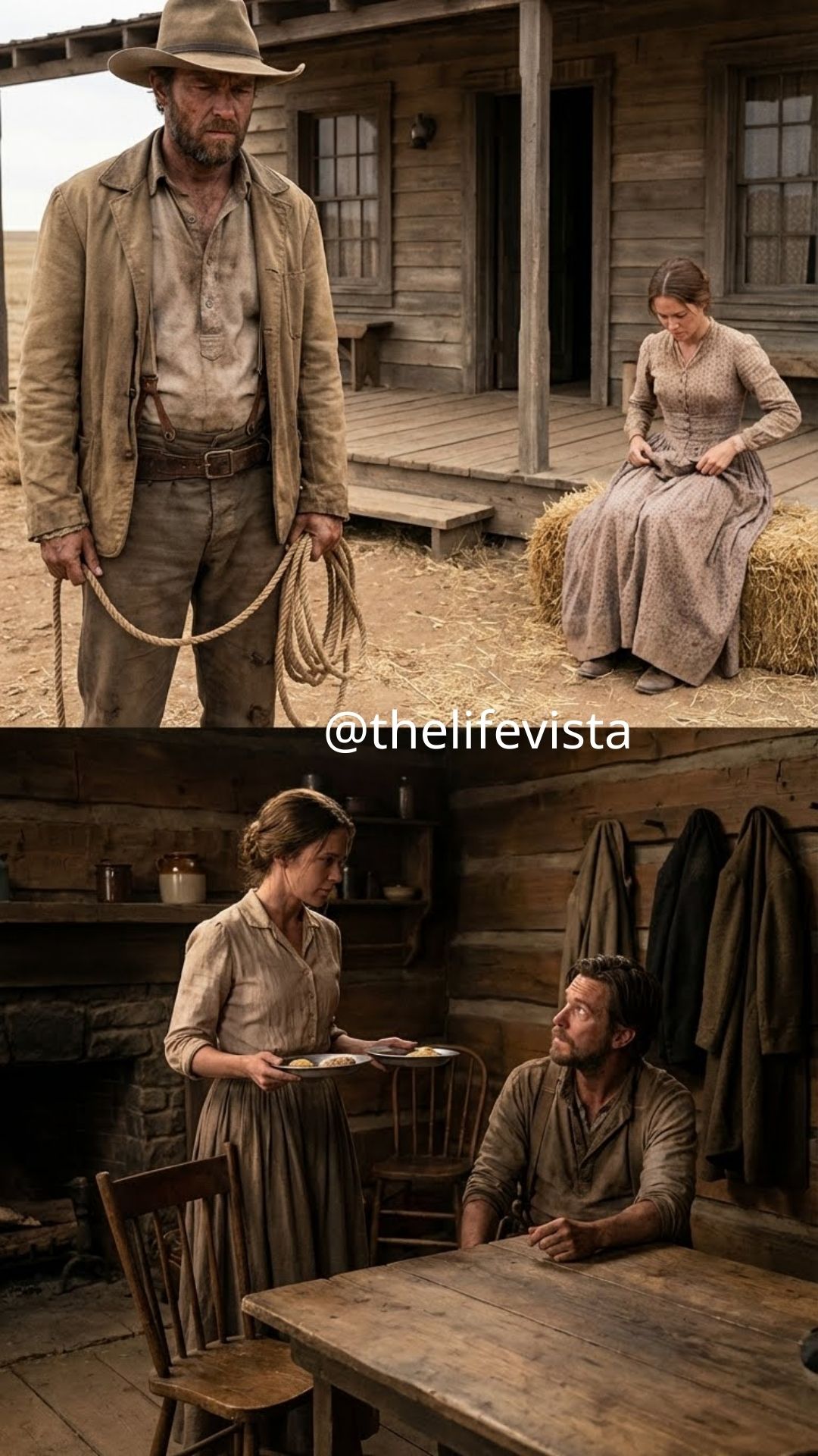 He moved with quiet purpose then, as if to keep his mind from circling the same dark place. He checked the stove, adjusted the damp wood stacked beside it, hung his coat, glanced through the side window at the horses in the corral. He didn’t look at her much after that, and somehow that was almost worse. Most men stared. Most men measured what they could take. Jackson Reed had looked at her once, really looked, and then turned away like the sight offended him.