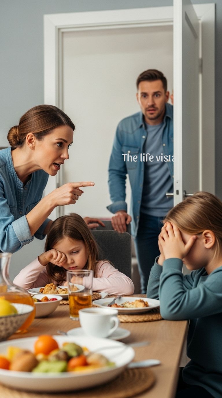 That morning, I stood in that same room, hidden behind a partially open door, and waited for the mask to slip. At first, nothing seemed unusual; the children sat at the dining table, their breakfast half-finished, their movements careful in a way that felt rehearsed. Rowenna stood near the counter, her posture straight and her expression composed.