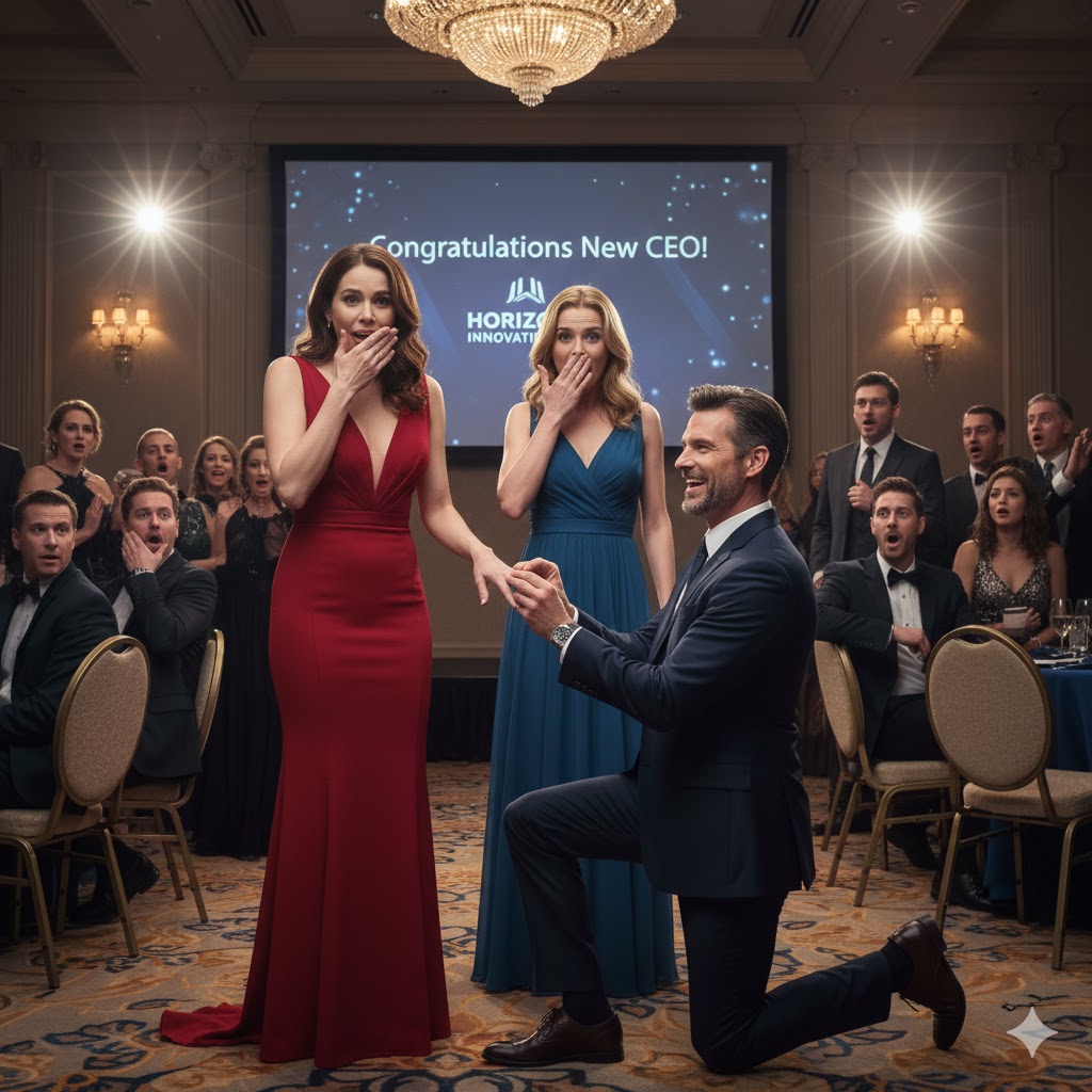 His wife of fifteen years, Rachel Roberts, sat at a nearby table, her hands clasped together, smiling warmly, expecting him to thank her for her sacrifices. Instead, Daniel turned toward a young woman in a red dress — Sophie Taylor, his assistant — and in front of everyone, he knelt down.