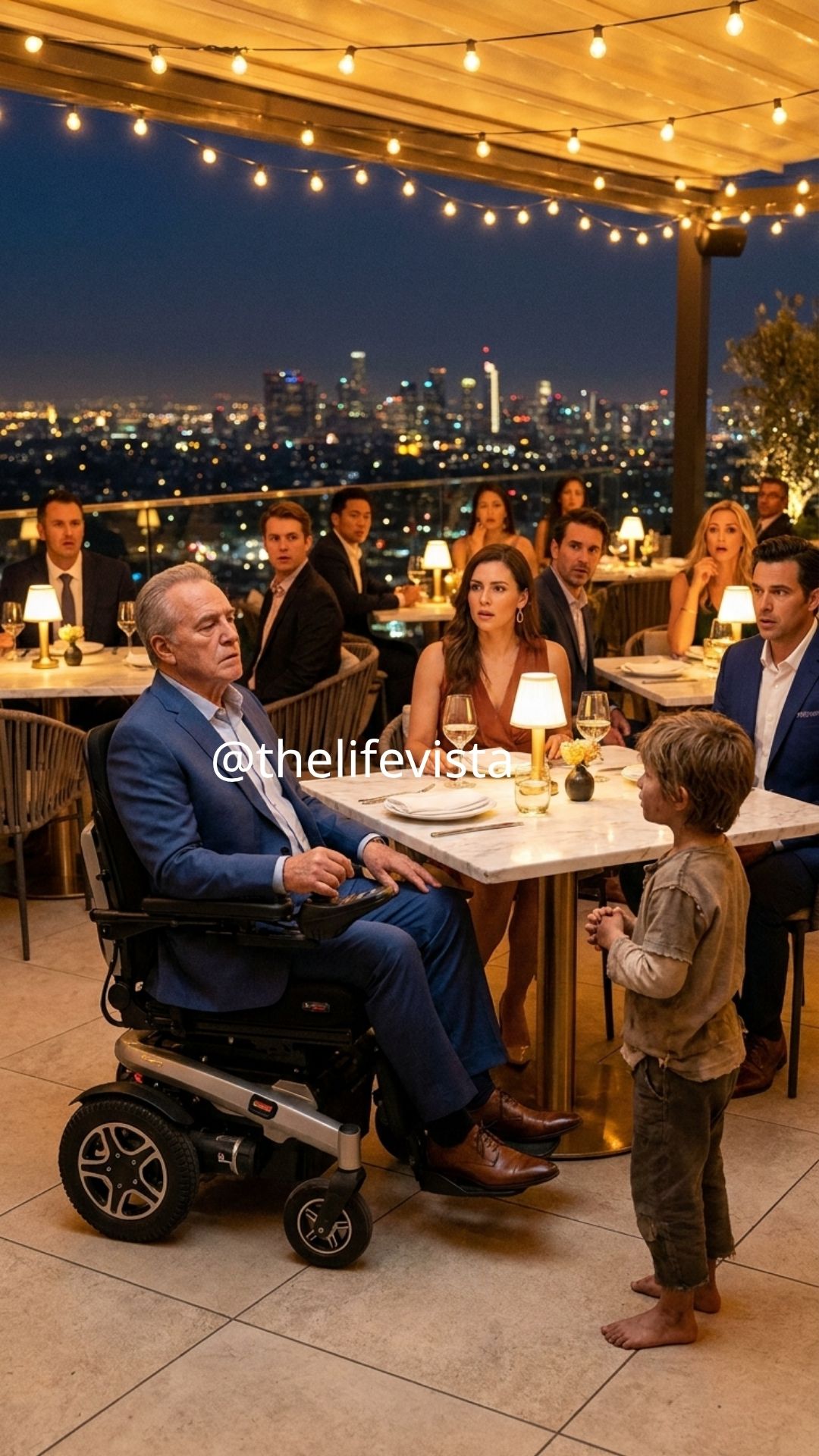 In a luxurious rooftop restaurant, a barefoot boy stunned a wealthy man by claiming he could make him walk again—and then actually did. But the miracle wasn’t the real shock; the boy revealed he was the son of a woman the man had abandoned years ago. What followed wasn’t healing, but a reckoning the man could no longer escape.