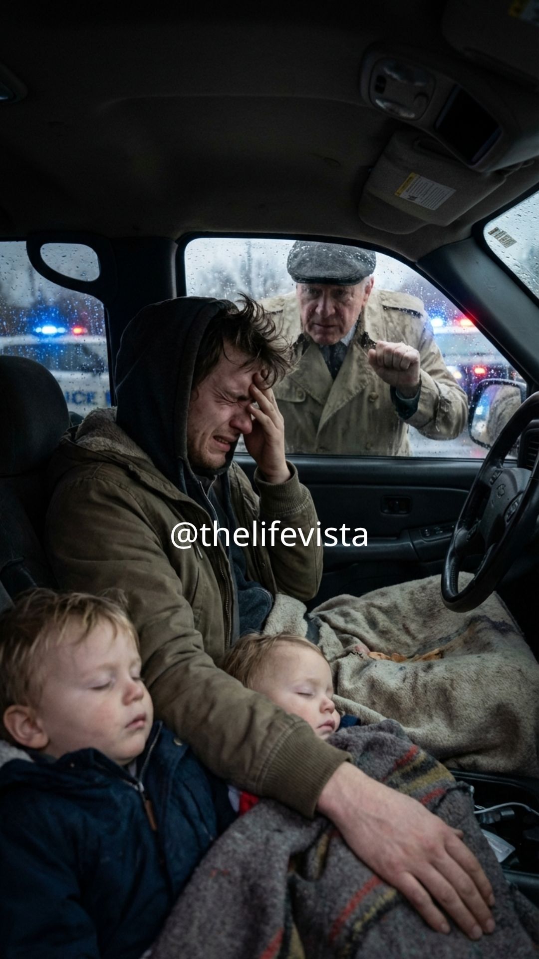 I approached slowly, hesitating before reaching out to wipe a hand across the damp glass. The interior light glimmered faintly, and I froze. In the driver’s seat, slumped over, was Ethan. His face was pale, unshaven, hair in disarray. In the backseat, two tiny bundles moved under an old, threadbare blanket, small whimpers escaping now and then. My grandsons. My heart tightened so abruptly I had to grip the car for support.