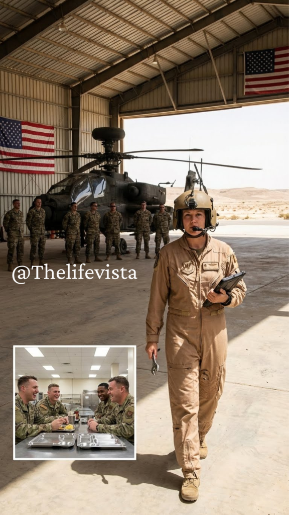 Mia stood five foot four, built from endurance and stubborn pride. Her hands were rough, her nails always stained with hydraulic fluid. For four years, she’d kept Apaches alive in this desert. Before that, she’d worked on Black Hawks in Germany. Her job wasn’t to fly. It was to make sure others could. That had been the rule, a dividing line written in policy and reinforced by hierarchy.