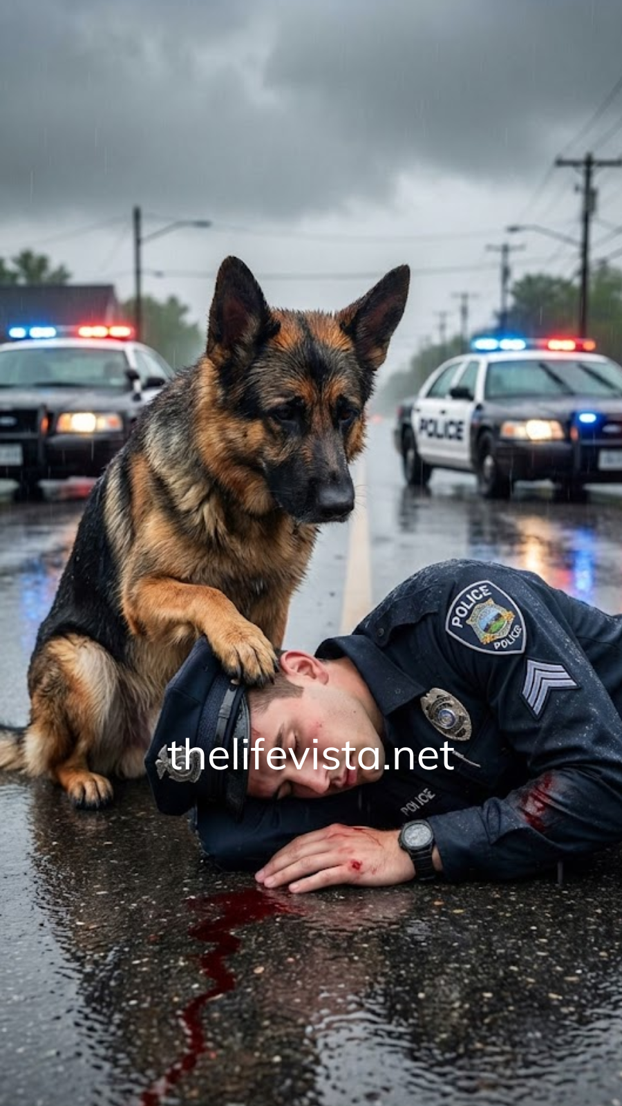 They found Aaron Cole barely breathing, uniform soaked dark and heavy. And they found Koda standing over him like a sentry, teeth bared, blood matting his fur.