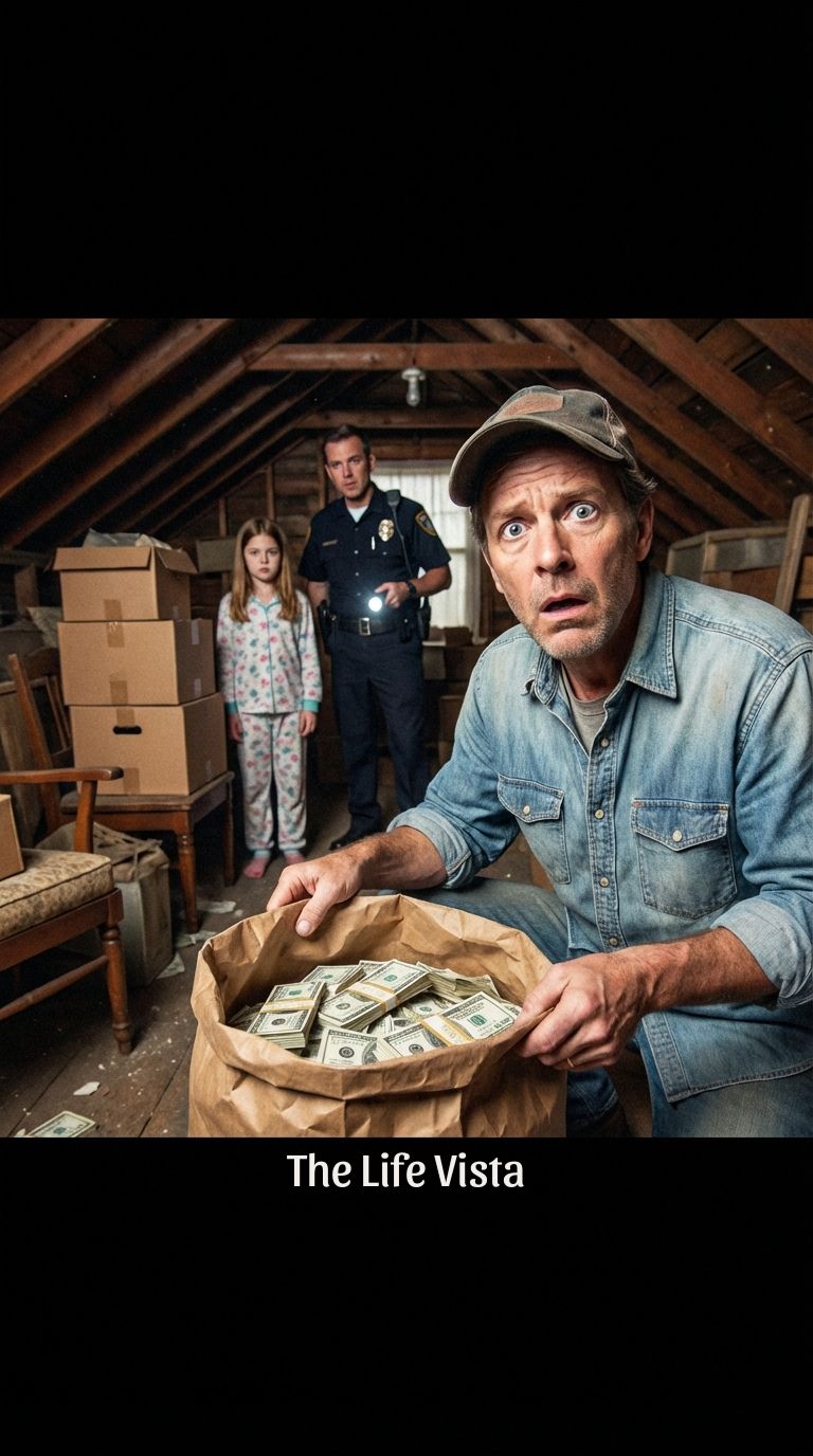 The door opened with a shriek, and the steep stairs led into a suffocating pocket of heat. Thayer climbed carefully, flashlight in hand, and the beam swept across a sight that made him stop halfway up the final step. Bags.