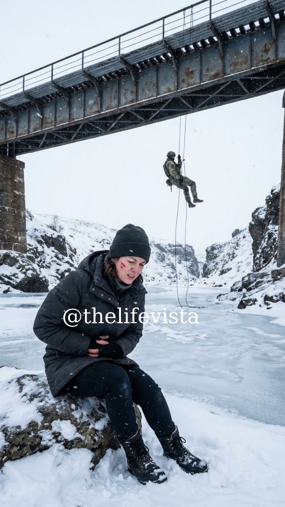 The fall wasn’t dramatic—just sudden. Her body slid sideways, then down, her back striking frozen dirt as she tumbled beneath the bridge onto the riverbank below. Pain exploded through her hip. Her breath vanished.