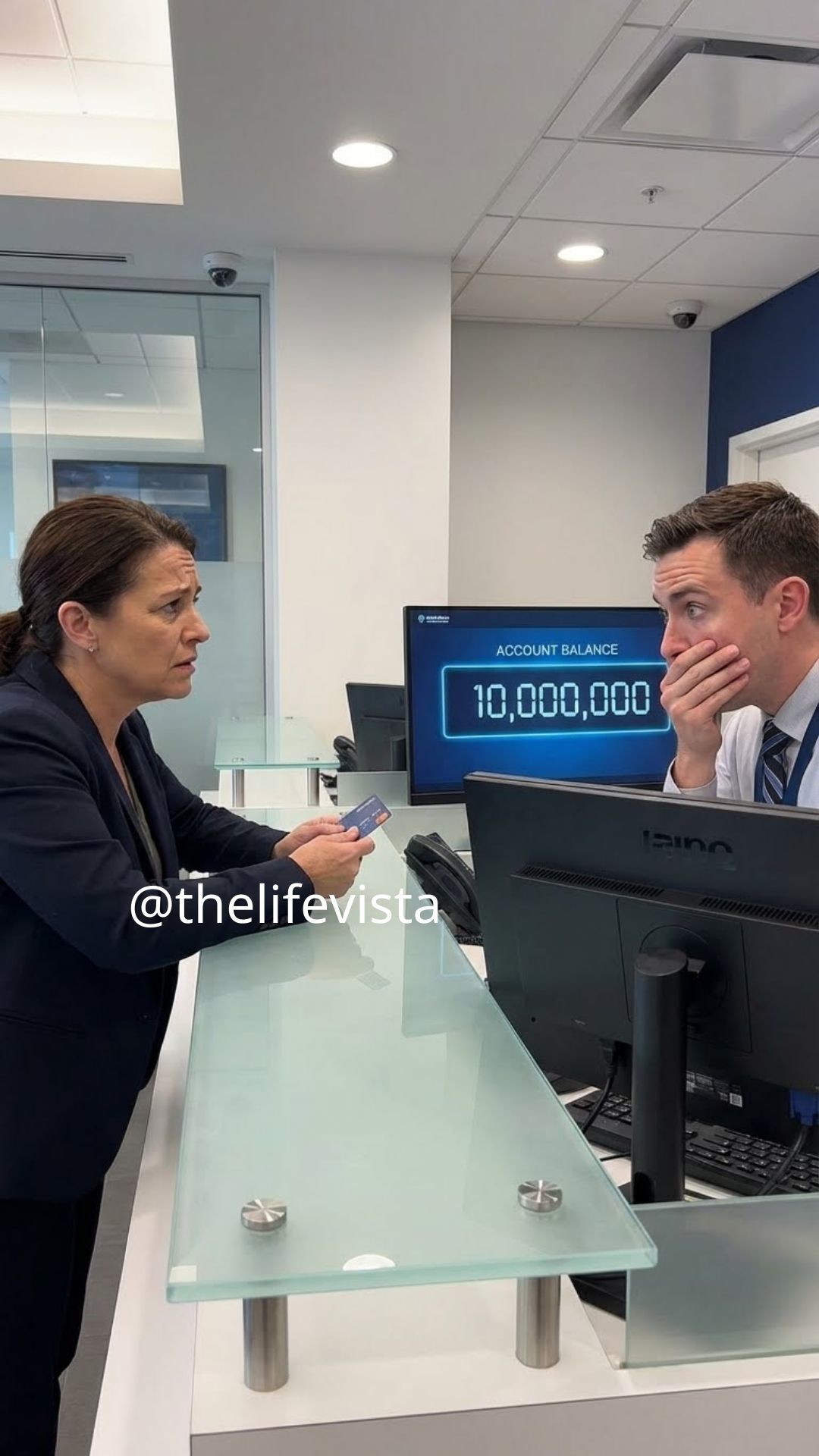 The teller, an older man named Mr. Harrison, took the card. He swiped it casually—then froze. His face drained of color. He looked at me as if the screen had shown something impossible.