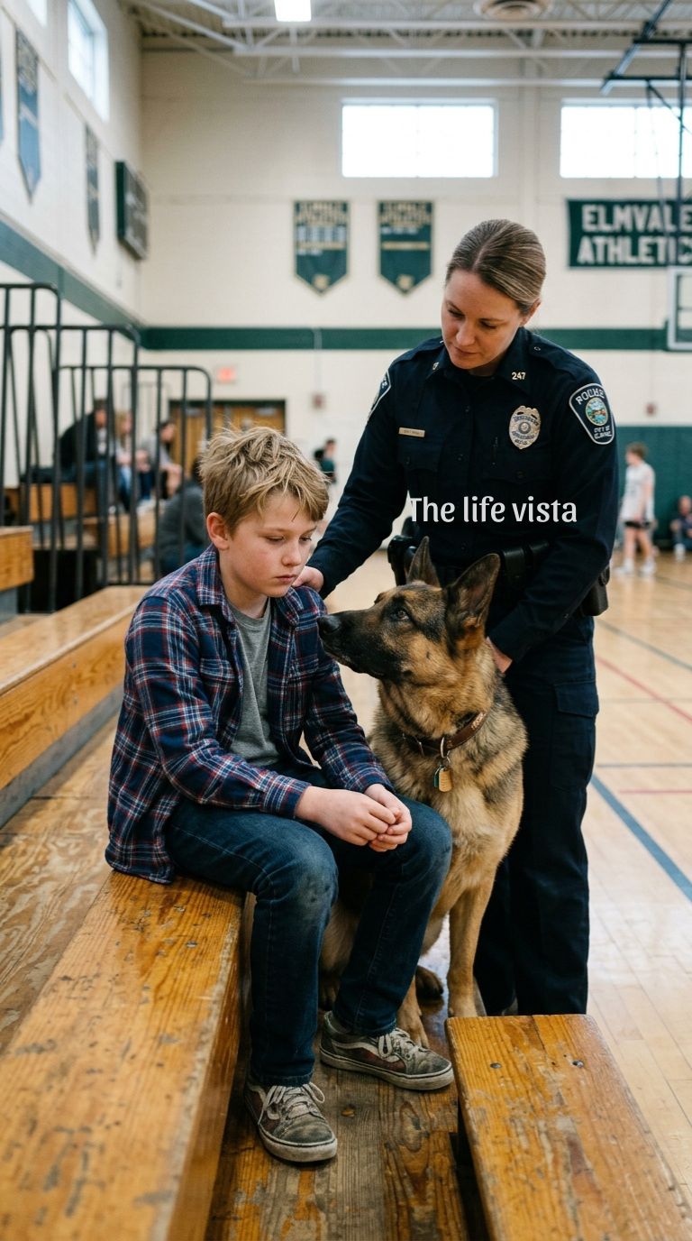 I unclipped the leash. Titan shot forward like a bullet. The kids gasped. Some of the younger ones in the front row shrank back. Titan was intimidating. He hit the row of lockers, his nose working furiously along the metal vents, his breath snorting loud enough to echo in the silent gym.