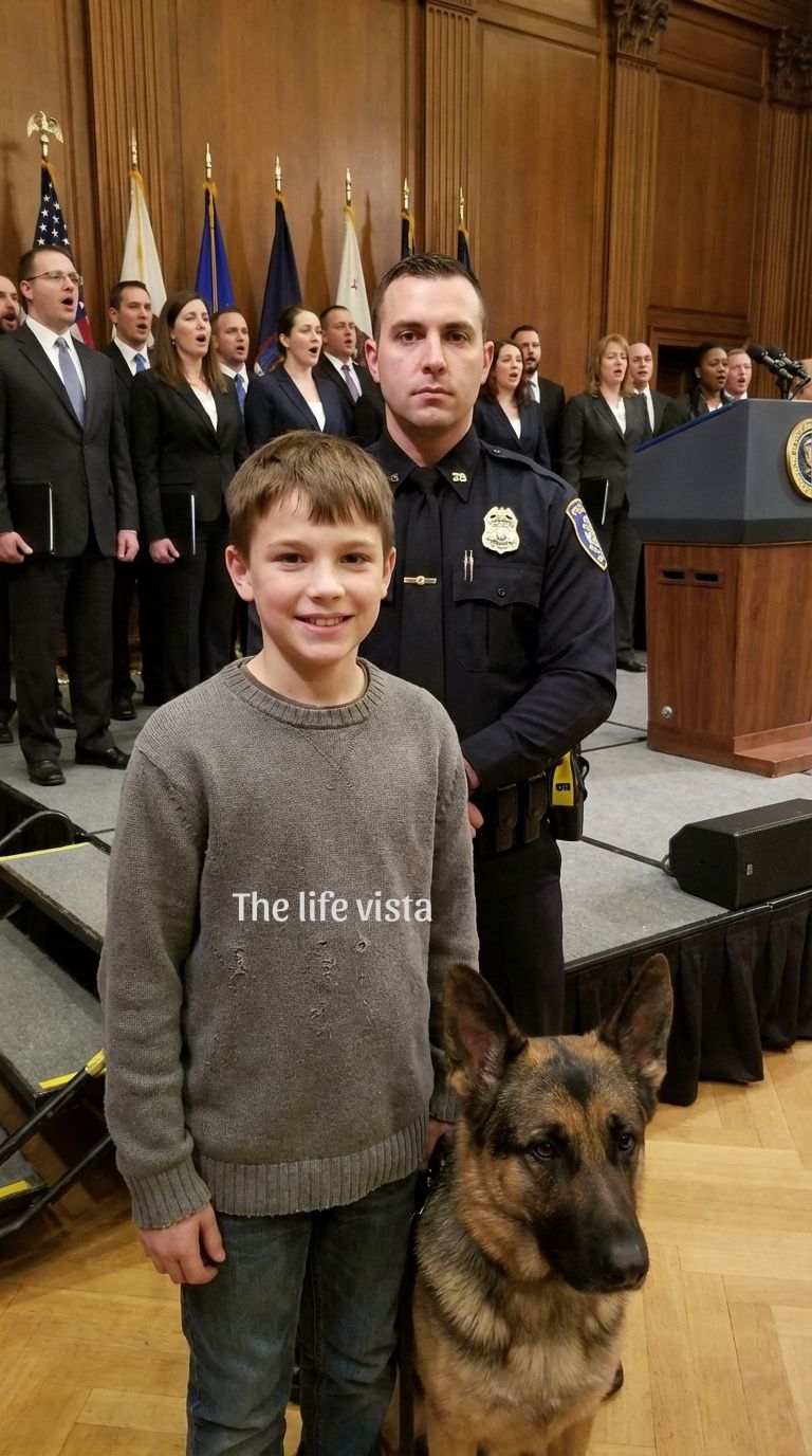 ‘Stand down! Stand down!’ Officer Miller barked, though his voice lacked any real urgency to protect me. He hauled back on the heavy leather leash, but Titan’s grip was absolute. The dog was signaling. It had locked onto something, completely bypassing protocol, ignoring the calm environment, and zeroing in on the smiling boy in the front row.