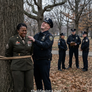 And as his eyes fell on Eleanor, the general’s expression changed completely. Lieutenant General Whitaker didn’t speak immediately. He scanned the room: the scattered napkins, the rigid soldiers, Caldwell standing stiff with irritation. Then his gaze returned to Eleanor. He removed his cover.
