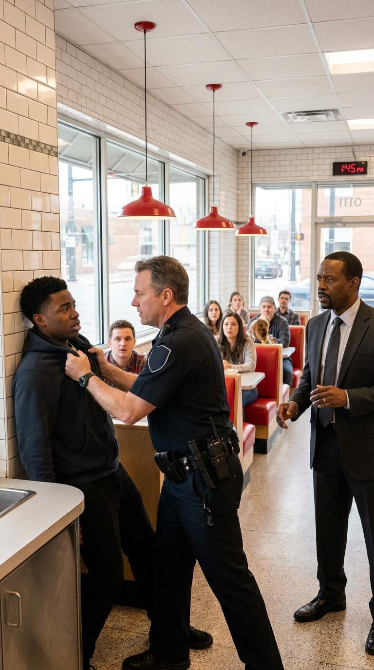 Not because he was reckless, but because his father understood how quickly the world could turn against a polite Black teenager when the wrong person in authority decided to act. Elias carried that understanding with him. So when Officer Derek Shaw stepped into the diner, rain still clinging to his jacket and irritation already etched across his face, Elias noticed him—then quietly returned his attention to his notes.