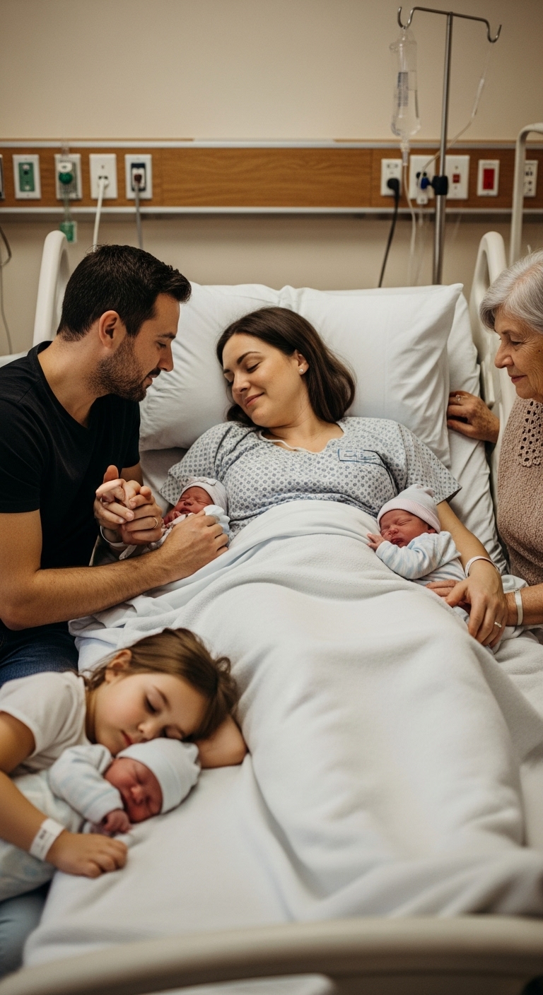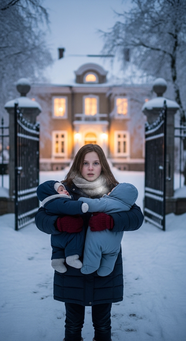 Chloe’s breath came in small, trembling clouds. Her thin jacket was soaked, her mittens stiff with ice. Beneath the blanket, the twins—Mason and Miles—whimpered faintly, their cries fading under the roar of the wind.