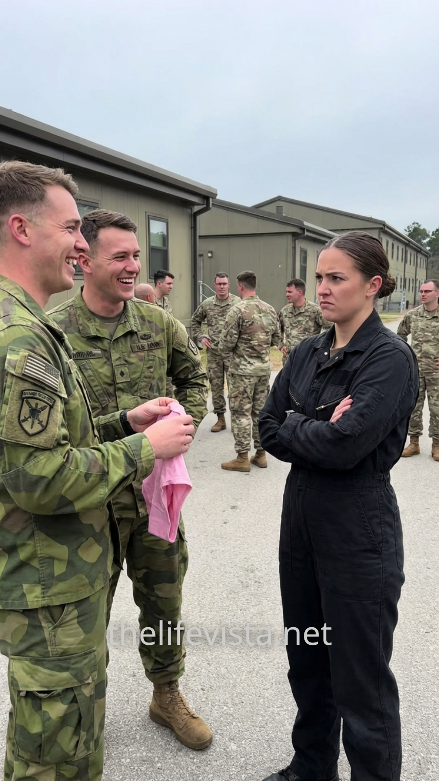 They radiated aggressive energy, laughter too loud, posture too expansive, dominating space by design. Their leader—a staff sergeant with a granite jaw and pale, watchful eyes—held court at the center of the room.