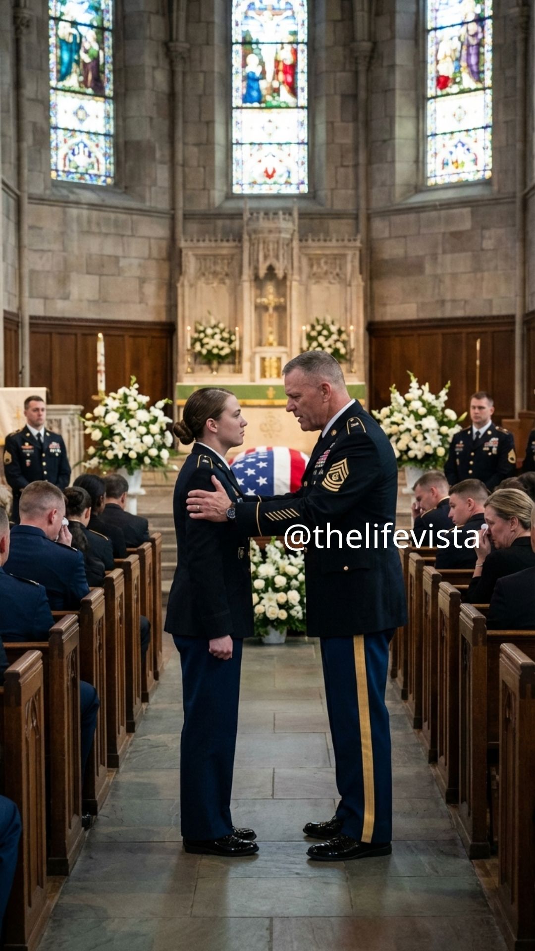 “Ma’am… please,” he said, his voice steadier now but no less urgent, “the front row is yours.” I walked back, not with pride, not with anger, but with a kind of stillness that comes when something long hidden becomes visible without explanation, the weight of years of silence finally beginning to lift in that solemn space.