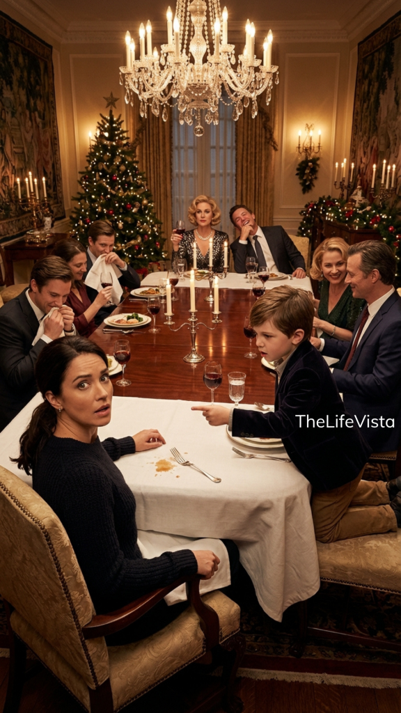 The table was long—mahogany, polished until it reflected the chandelier’s light in warm, smug streaks. The chandelier itself was all crystal and confidence, the kind of fixture people bought when they wanted their house to announce, *We made it*. The room glowed with that curated warmth wealthy people love: candles that smelled like “winter spice,” cloth napkins folded into stiff shapes, glassware that chimed softly when someone set a drink down.