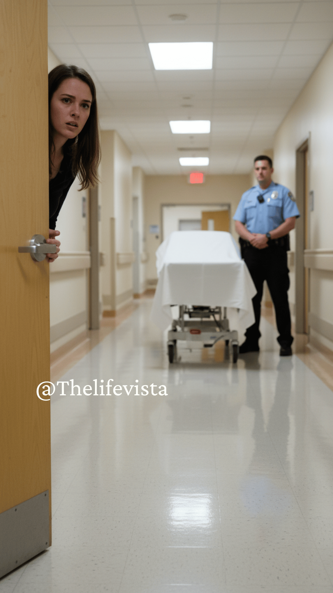 The hospital lobby was bright, cold, and buzzing with fluorescent lights. Before he reached the reception desk, two police officers approached him.