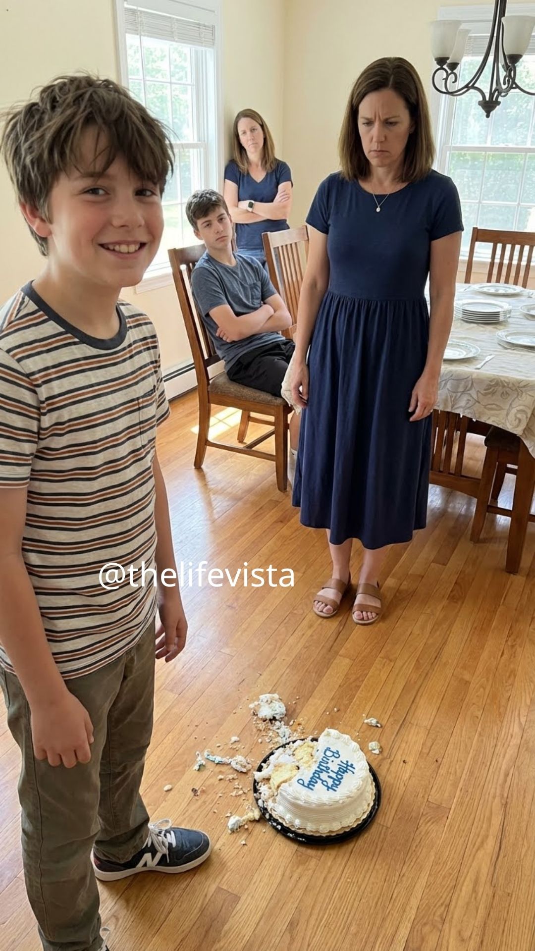 Halfway through the evening, my brother Jason’s ten-year-old son, Lucas, stood up from his chair, grabbed the cake box, and tipped it upside down.